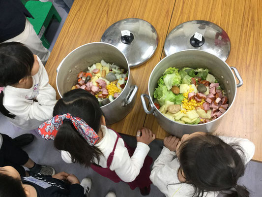 この絵本をもとに子ども達と一緒に何度かハッピースープというイベントを開催していました。
